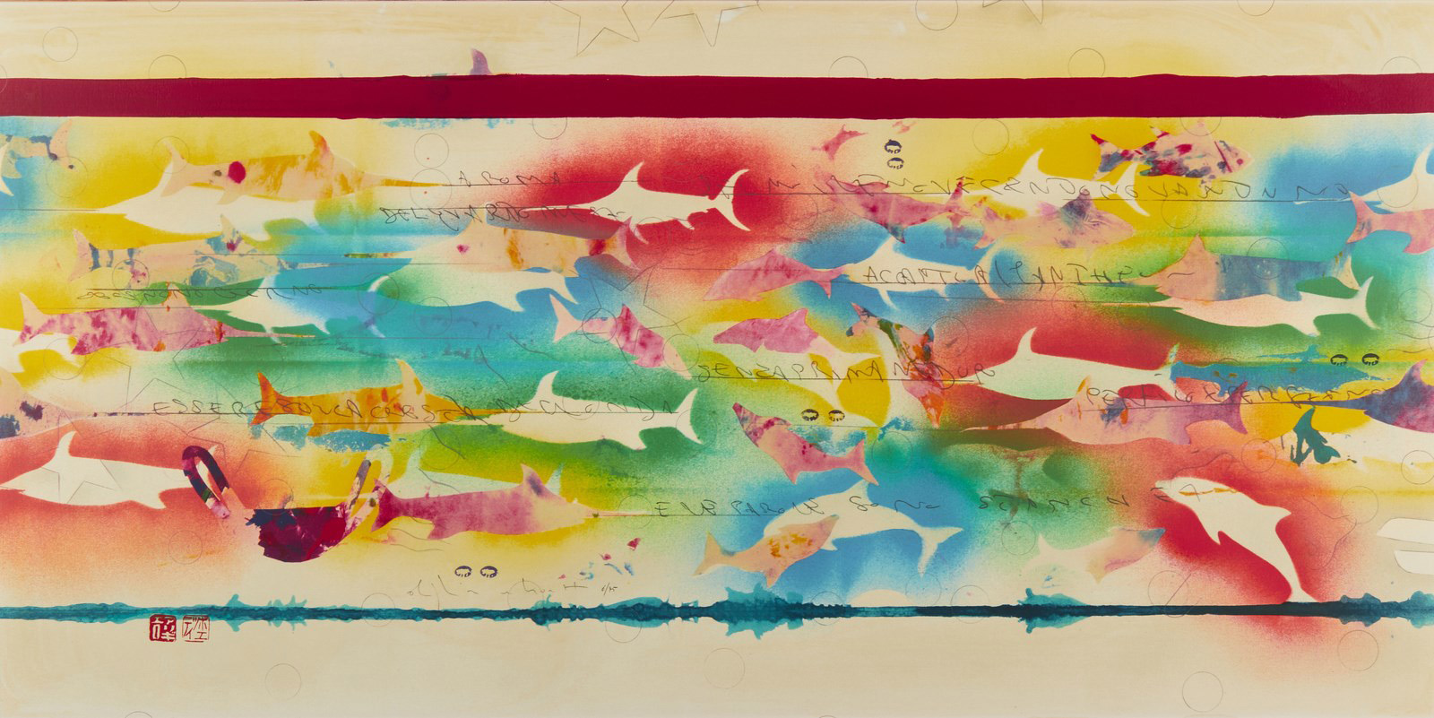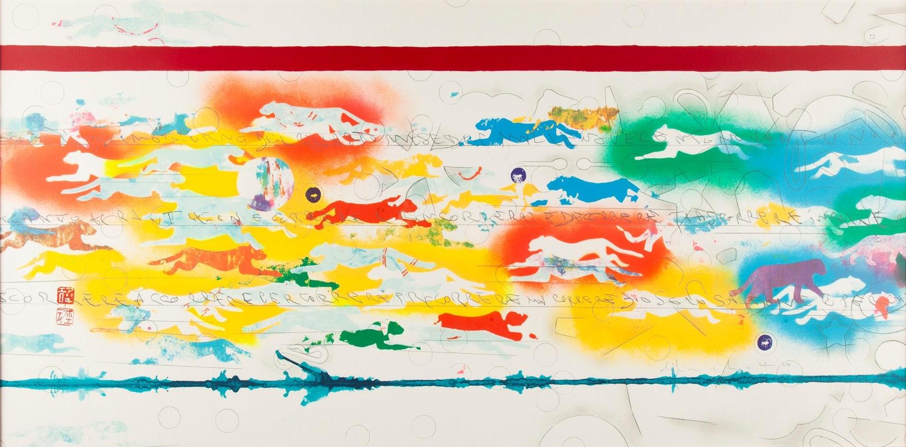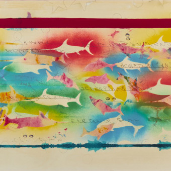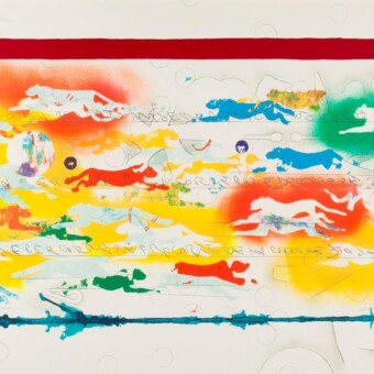 Alighiero Boetti (Torino, 1940 – Roma, 1994) – o Alighiero e Boetti come si firma a partire dal 1971 –esordisce nell’ambito dell’Arte Povera nel gennaio del 1967. Nel 1972 si trasferisce a Roma. Già l’anno precedente ha scoperto l’Afghanistan e avviato il lavoro artistico che affida alle ricamatrici afghane, tra cui le Mappe, i planisferi colorati che riproporrà lungo gli anni, come registro dei mutamenti politici del mondo. Artista concettuale, versatile e caleidoscopico, moltiplica le tipologie di opere la cui esecuzione – in certi casi – viene delegata con regole ben precise ad altri soggetti e altre mani, assecondando il principio del “la necessità e il caso”: così le biro, i ricami di lettere, i fitti puzzle, i lavori postali, gli esercizi su carta quadrettata, ecc.