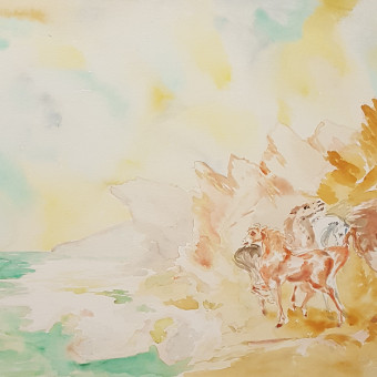 Aligi Sassu (Milano, 1912 – Pollença, 2000). Molto vicino al movimento futurista, membro del gruppo di Corrente e convinto antifascista. Artista versatile e in continua evoluzione, ogni periodo creativo è influenzato dai cambiamenti della realtà che lo circonda. I protagonisti delle sue opere mutano nel corso del tempo: dai celebri Uomini rossi, ai cavalli, figure mitologiche, soggetti sacri, i ricordi dei Caffè di Parigi, le tauromachie. Si accosta all’arte futurista fin da piccolo: grazie alle conoscenze del padre, entra in contatto con Carrà, Boccioni, Marinetti, e nel 1928 scrive il Manifesto della Pittura “Dinamismo e riforma muscolare” col designer Bruno Munari. Aderisce al primitivismo studiando Beato Angelico e Masolino da Panicale;
