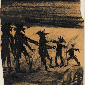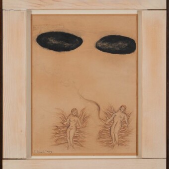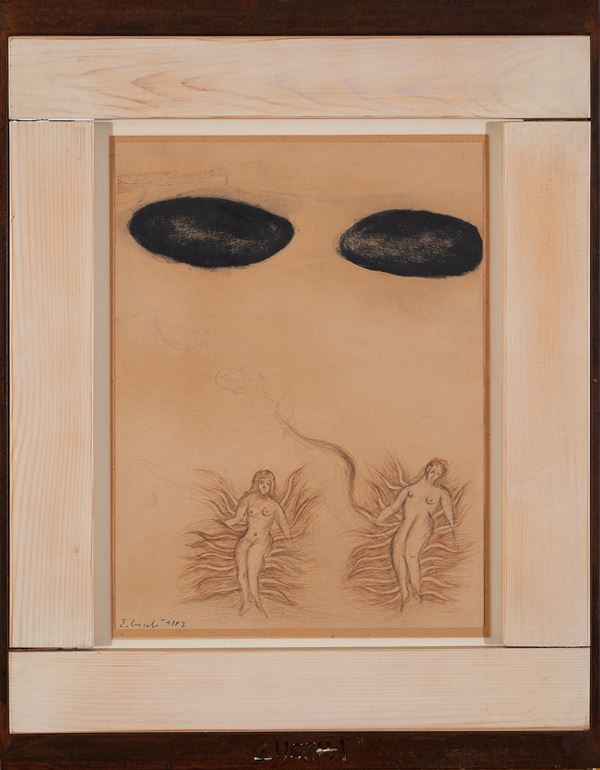 Enzo Cucchi (Morro d’Alba, 1949). Si avvicina alla pittura da autodidatta, a 18 anni vince il primo premio in un concorso per giovani artisti ad Ancona con il dipinto “Battaglia tra Dei ed Eroi”. Riprende dapprima l’arte concettuale, per poi divenire uno degli esponenti più rappresentativi della Transavanguardia, insieme a Sandro Chia, Mimmo Paladino, Francesco Clemente e Nicola De Maria, corrente artistica etichettata ufficialmente da Achille Bonito Oliva nel novembre del 1979 sulla rivista Flash Art, che ha segnato il ritorno dell’arte occidentale alla figurazione e orientata verso soluzioni pittoriche sempre più neoespressionistiche, in contrapposizione alla precedente Minimal e Concept Art. Espone per la prima volta agli incontri internazionali d’arte a Roma ed alla Galleria Luigi De Ambrogi a Milano nel 1977. Nel 1980 partecipa alla rassegna Aperto ’80 della Biennale di Venezia. La sua attività espositiva si fa intensa, da ora in poi sarà un continuo succedersi di mostre nei musei più prestigiosi: 1982 e 1988, Kunsthaus di Zurigo; 1985, Caja de Pensiones di Madrid; 1986, Solomon R. Guggenheim Museum di New York e Centre Georges Pompidou di Parigi; 1987, Stad tische Galerie im Lenbachaus di Monaco; 1991, Kunsthalle