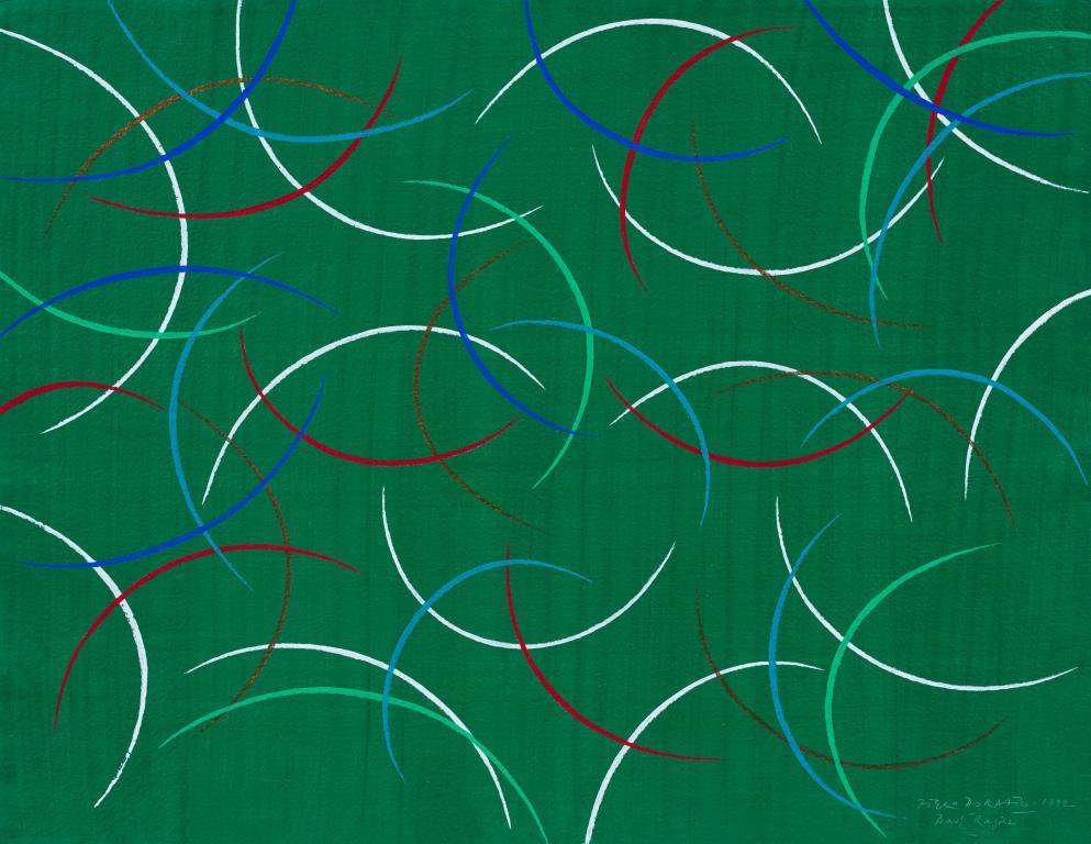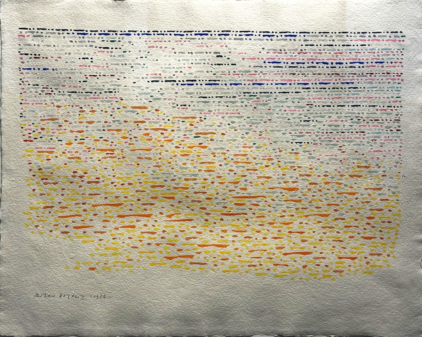 Piero Dorazio (Roma, 1927 – Perugia, 2005) è stato uno dei massimi rappresentanti dell’astrattismo europeo, corrente artistica alla quale si avvicina a metà Novecento. Le sue opere si caratterizzano per l’uso di linee, geometrie e colori; tutti elementi che diventeranno la sua cifra stilistica, grazie anche ad un attento studio e suddivisione degli spazi. Fondamentale per il suo percorso stilistico è il 1945, anno di conclusione della seconda guerra mondiale. A questa data il panorama artistico italiano inizia a sentire l’esigenza di sottrarre l’arte da qualsiasi riferimento naturalistico e dalla funzione sociale che fino a quel momento aveva caratterizzato le opere, in favore di un nuovo linguaggio apparentemente più semplice ma nuovo, in linea con le esperienze artistiche internazionali. In questo senso si esprime anche Dorazio che, nel 1945 insieme a Carlo Aymonino, Achille Perilli, Mino Guerrini, Lucio Manisco, Carlo Busiri Vici, Alfio Barbagallo e Renzo Vespignani, fonda il Gruppo Ariete e successivamente il Gruppo Arte Sociale.